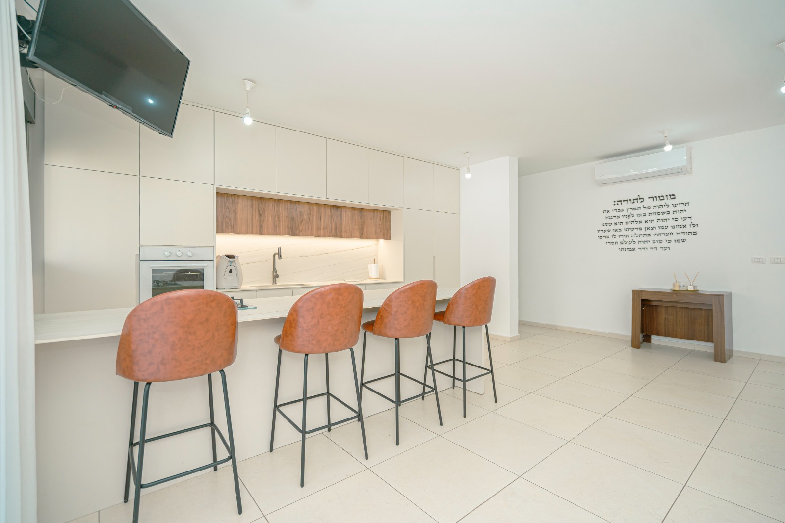 מתוכננת נהדר מטבח מאוד משודרג עם אי גדול , חלון במטבח , מיזוג מפוצל וחסכנו חדר ארונות ביחידת הורים